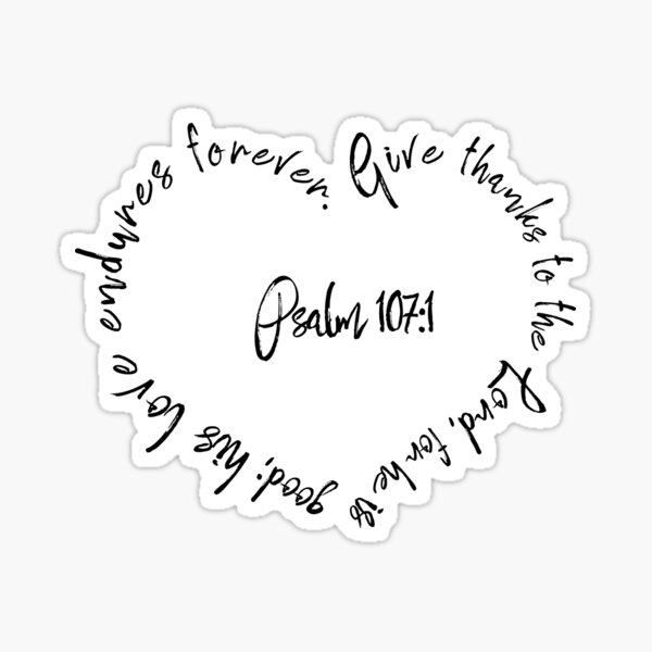 Psalm 107 1 Bible Quote Love Heart Sticker For Sale By Ourlordslove Redbubble